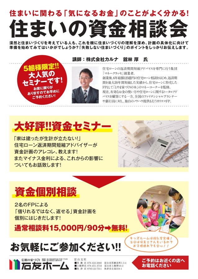 弊社代表の舘林が石友ホーム黒瀬店にてセミナー・資金相談会を行います。