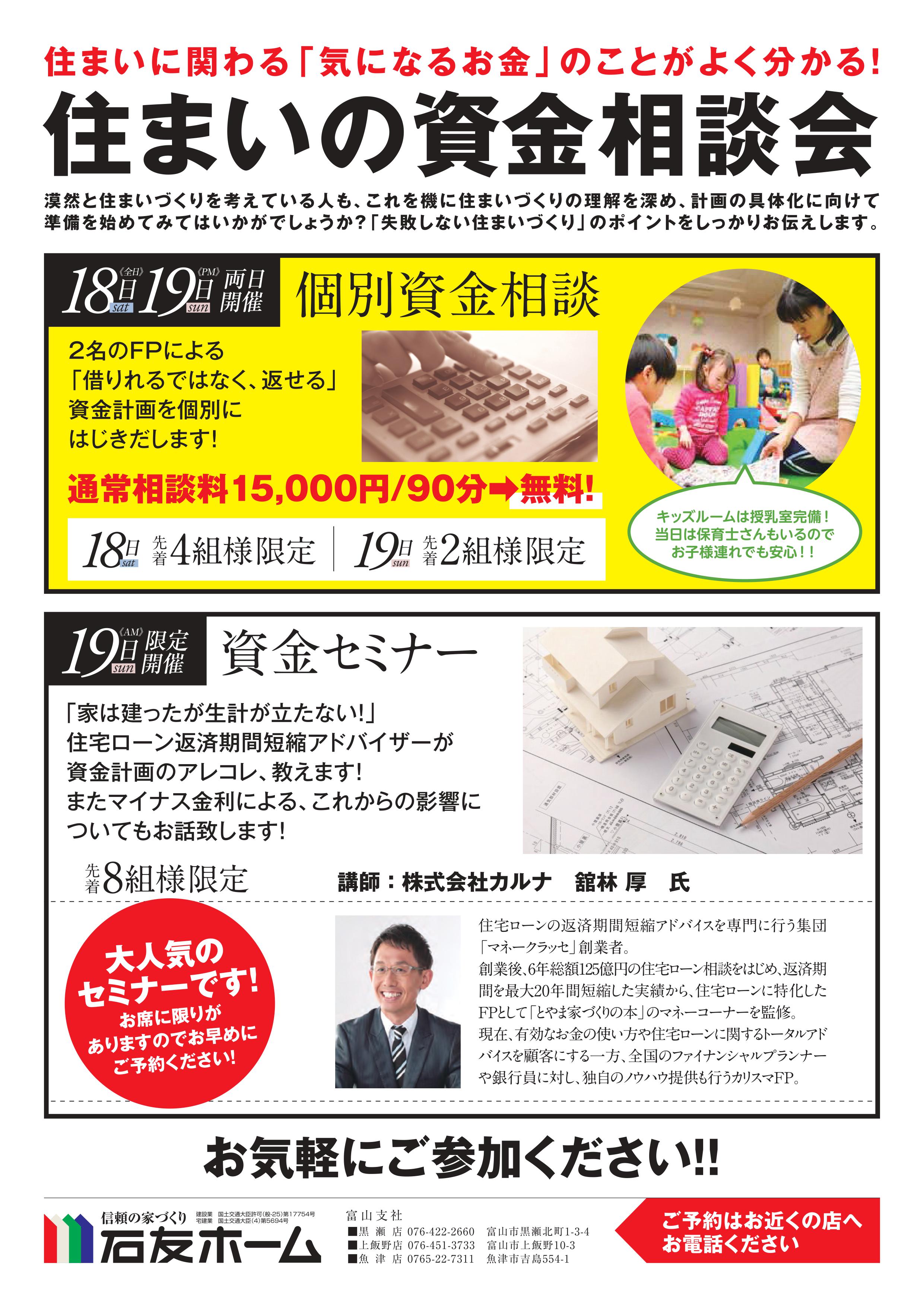 今回のセミナー受講料や相談料は、石友ホーム様が負担されます。
